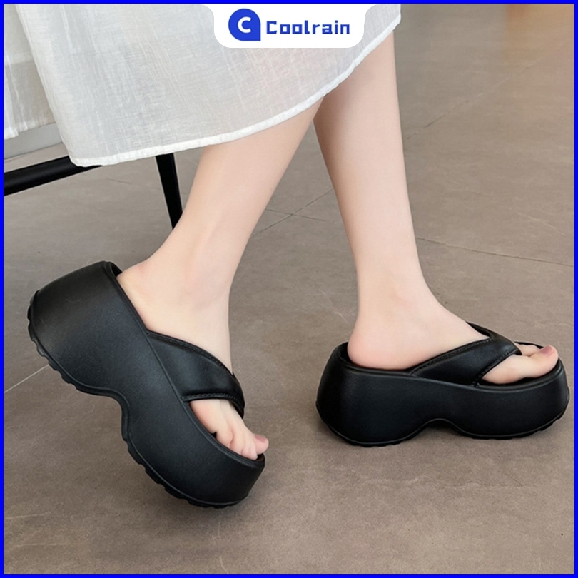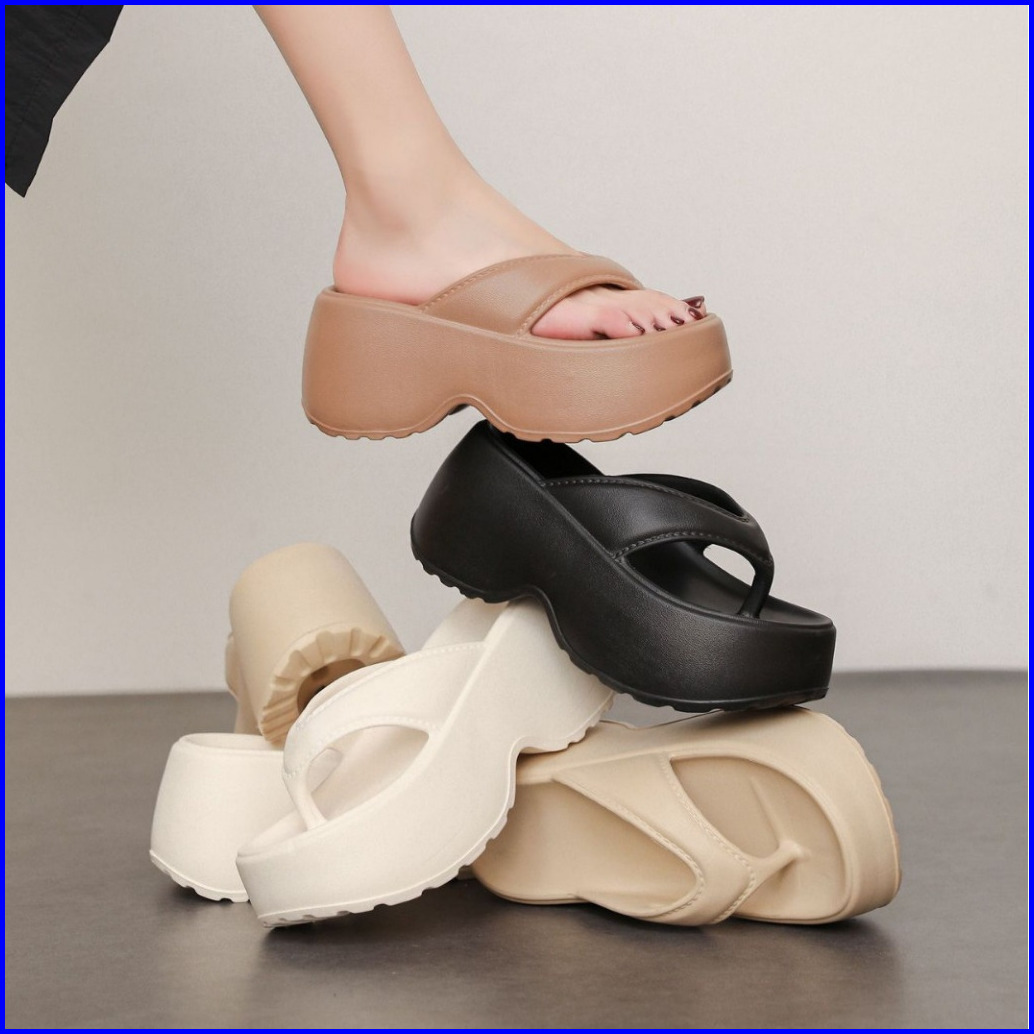 Coolrain Sandal Wanita Jepit Wedges Slip On Tinggi 6.5cm Premium Super Ringan Eva Jelly Karet Hvc958
