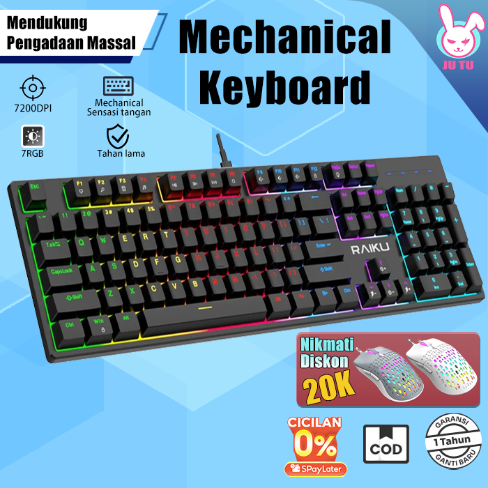 JUTU Keyboard Gaming Mechanical RGB Tahan Air Keyboard Mekanik Semua Tombol Keyboard Mechanical Keyboard Laptop Mechanic