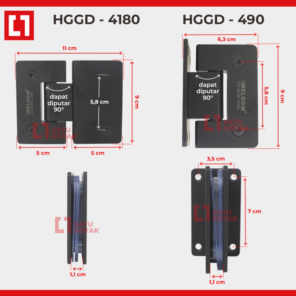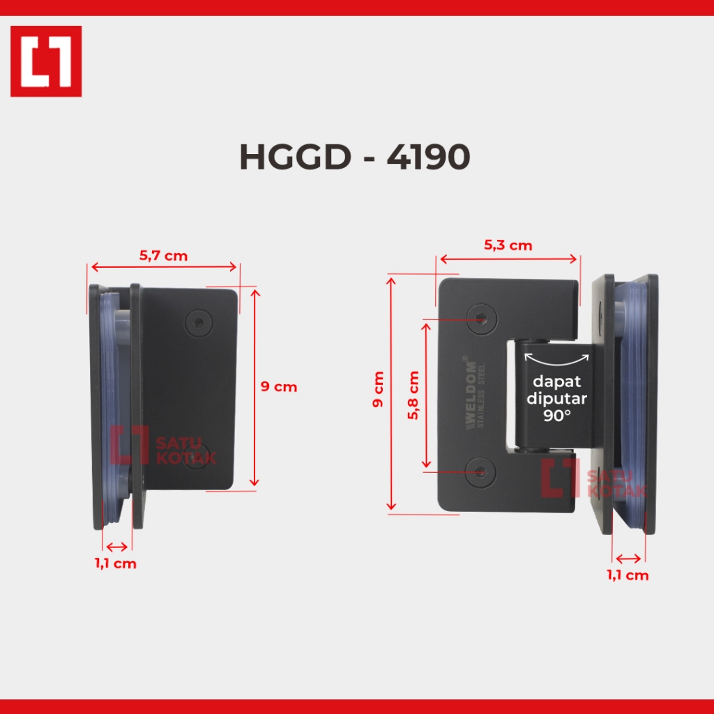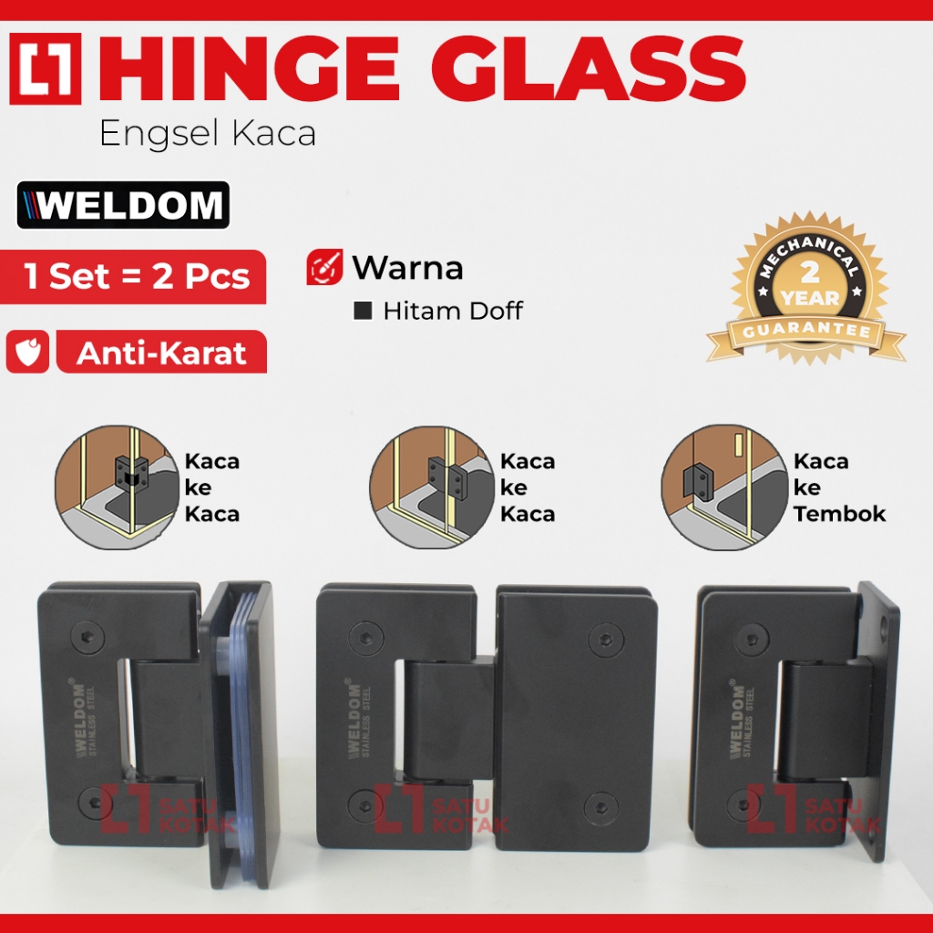 WELDOM Shower HingeGlass Door Engsel Pintu Kaca Toilet Black Stainless