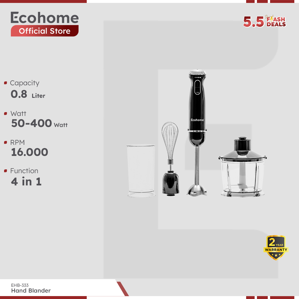 ECOHOME Hand Blender EHB333 Blender Praktis Multifungsi Low Watt 0.8L Capacity with Strong Titanium Blade