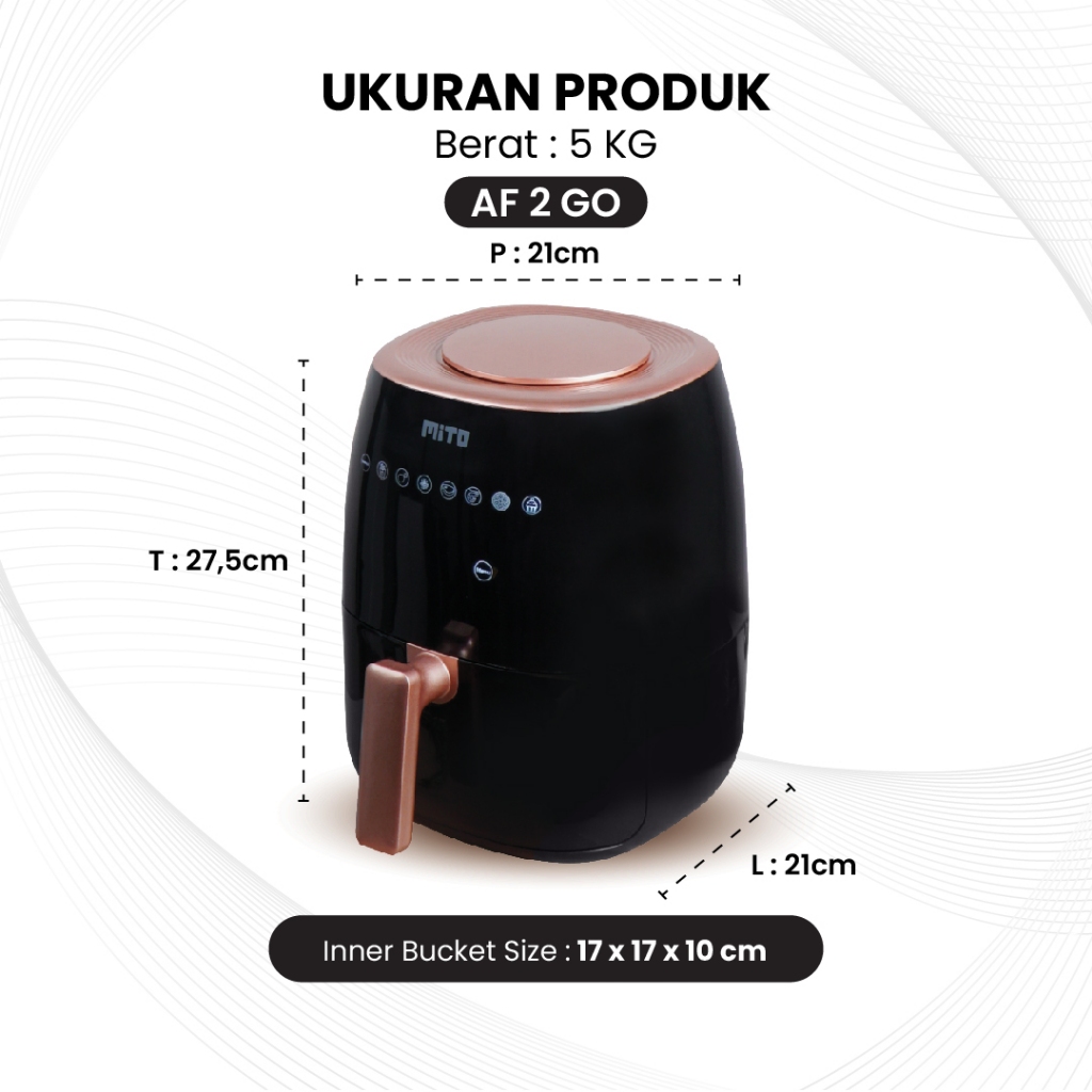 MITO Air Fryer Digi Fry Go AF2 3L Digital Low Watt Mesin Penggoreng Tanpa Minyak Garansi Resmi - Black Gold