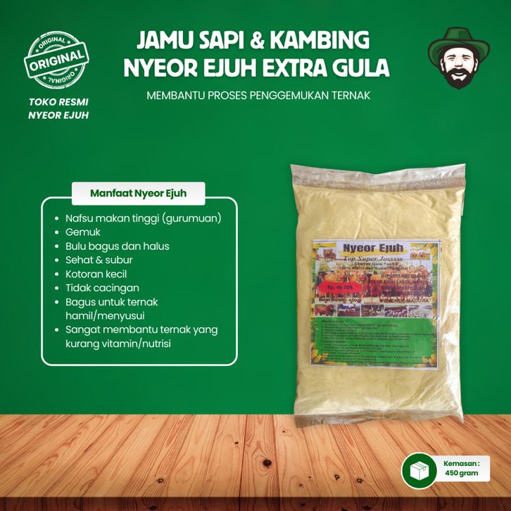 ( HARGA PROMO ) NYEOR EJUH Jamu Extra Gula Sapi Kambing Penggemuk & Penambah Nafsu Sapi Makan Vitamin Anti Cacingan