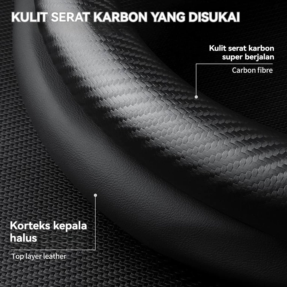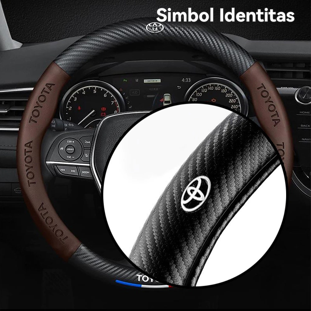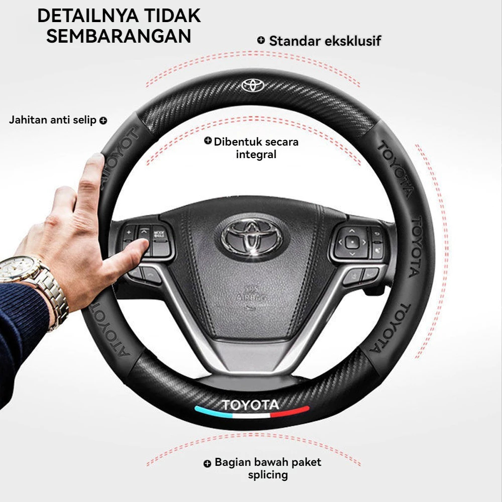 Sarung Stir Mobil Logo Brand Cover Steer Carbon Karbon Sport Kulit Domba Asli Original Toyota Premium Quality Emblem Aks