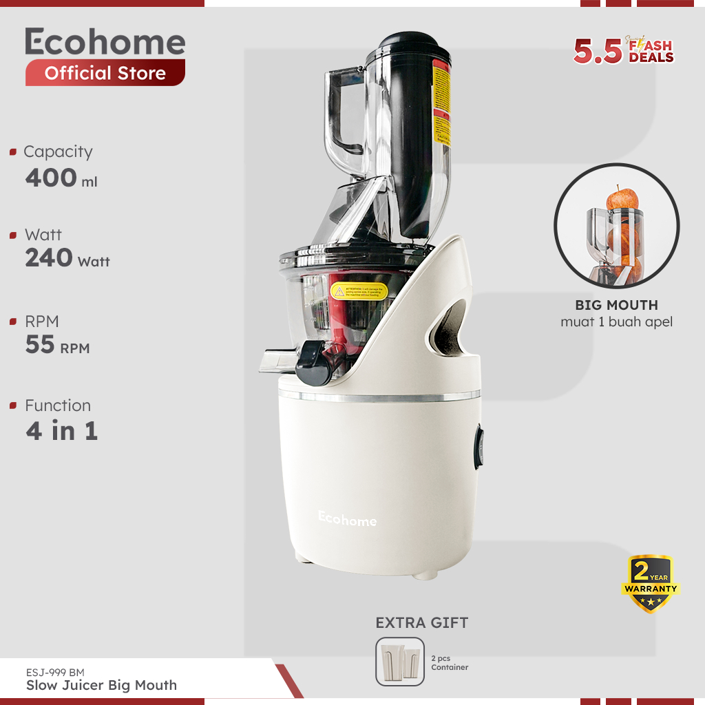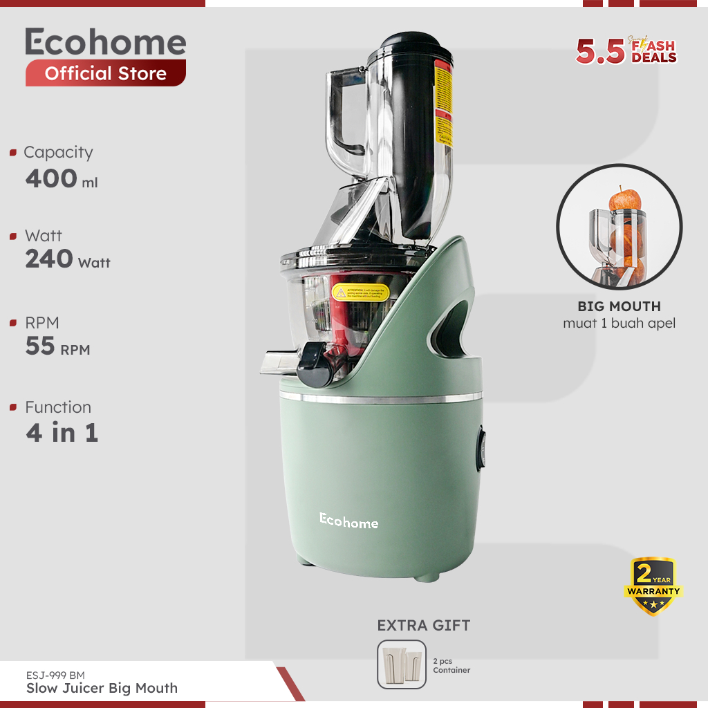 ECOHOME Slow Juicer Big Mouth ESJ999BM 55 RPM Pengekstrak Buah Low Watt Easy Clean Multifungsi