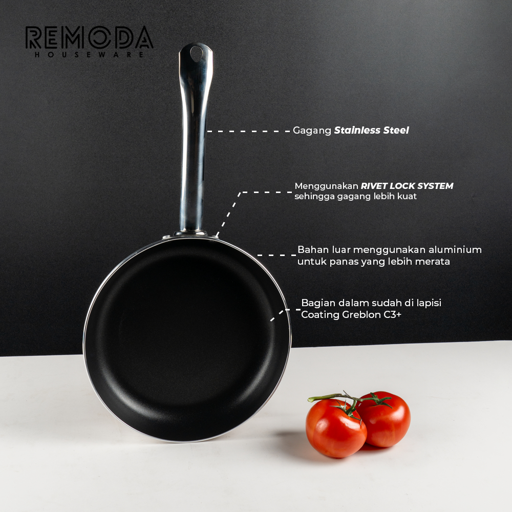 Promo Remoda Frypan Greblon C3+ Non-Stick Sautee Pan 20-26cm