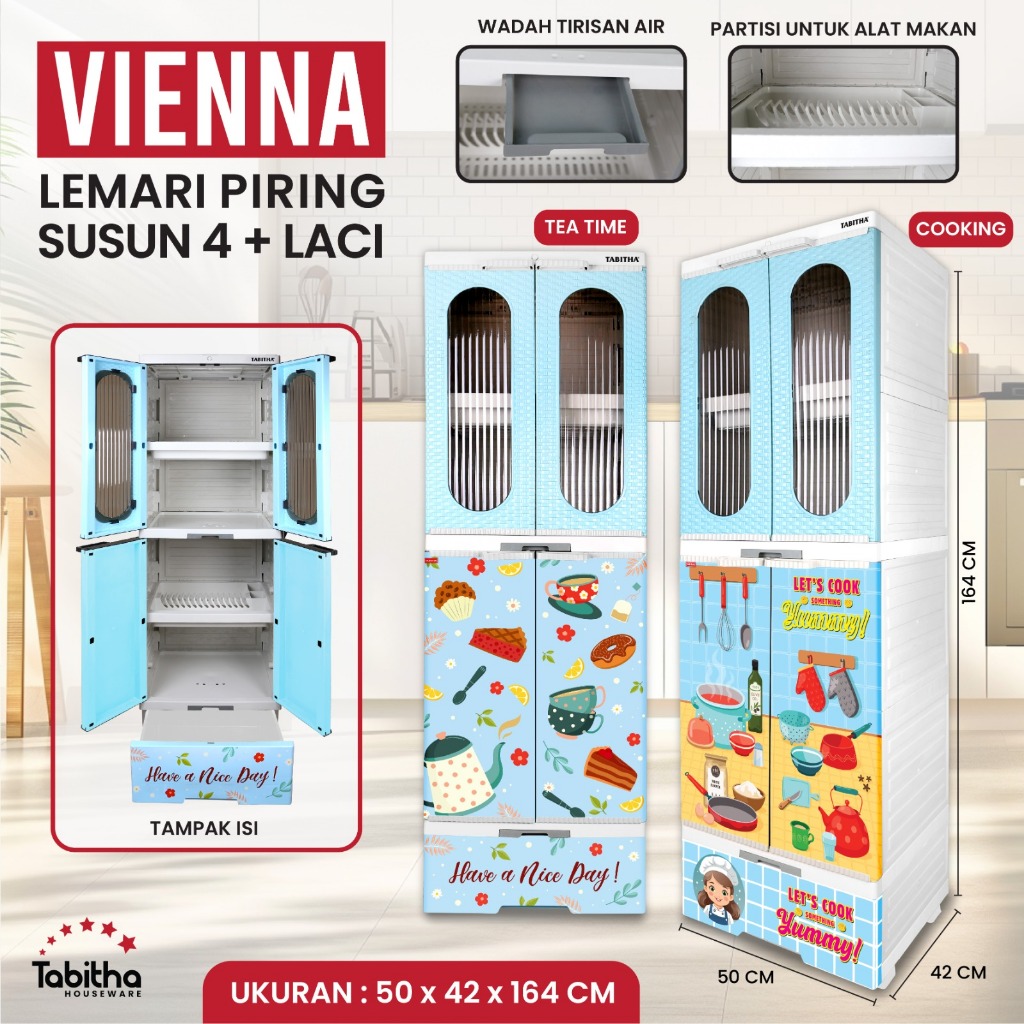 abitha Rak Lemari Piring Jumbo Printing Premium Lemari Dapur Estetik Serbaguna - Rak Piring Vienna