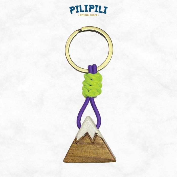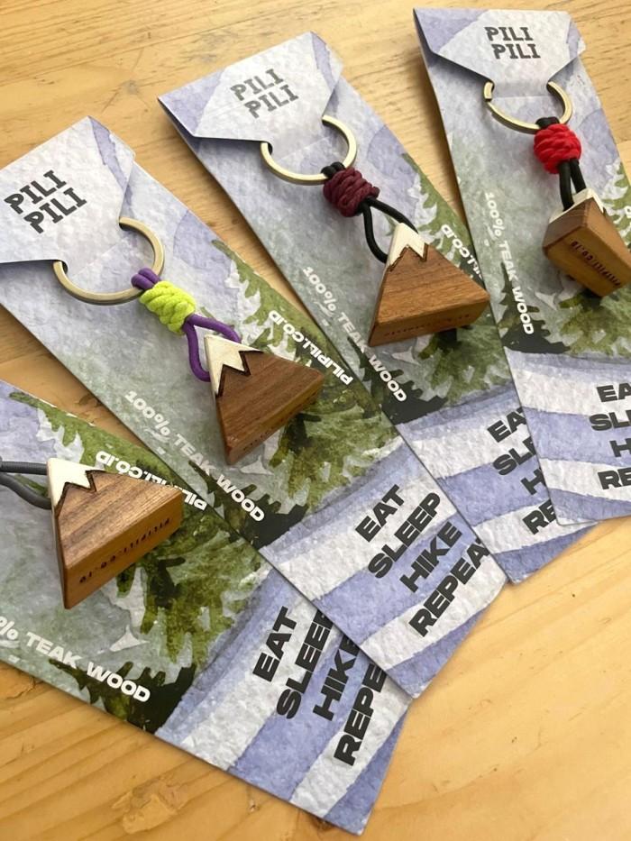 Gantungan Kunci Kayu Jati Pilipili Rustic Mountain Keychain