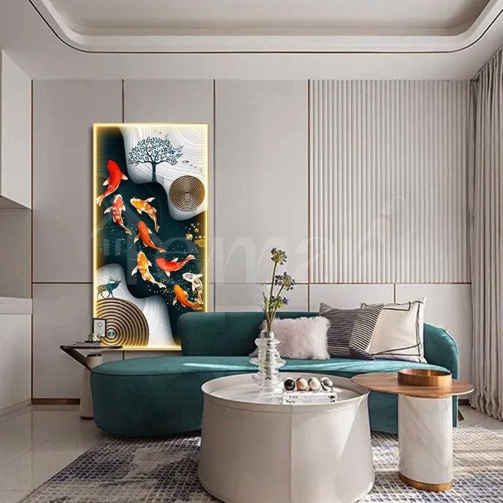 Lampu Dinding Aesthetic Lukisan Dinding Aesthetic Minimalis Remote 60w (120*60cm,100*50cm) Lampu Koi Gaya