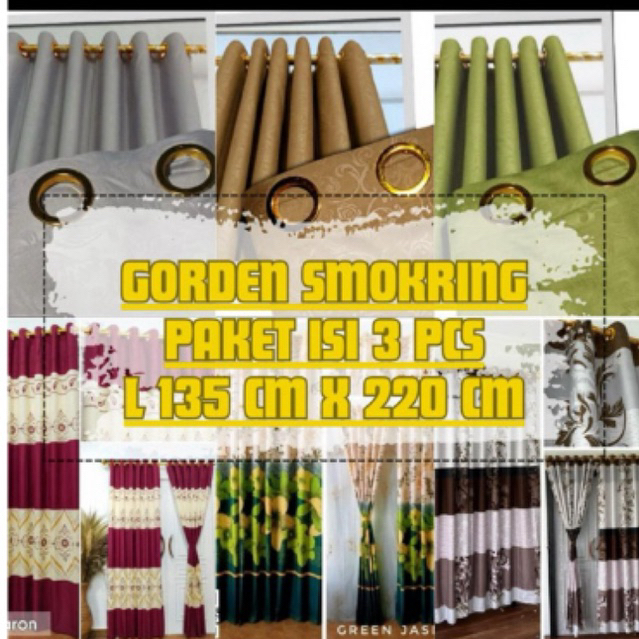 Best Seller Promo Hemat Isi 3 Pcs Gorden Smokring Pintu Dan Jendela Minimalis 12 Lubang Ring Tinggi 220 Cm