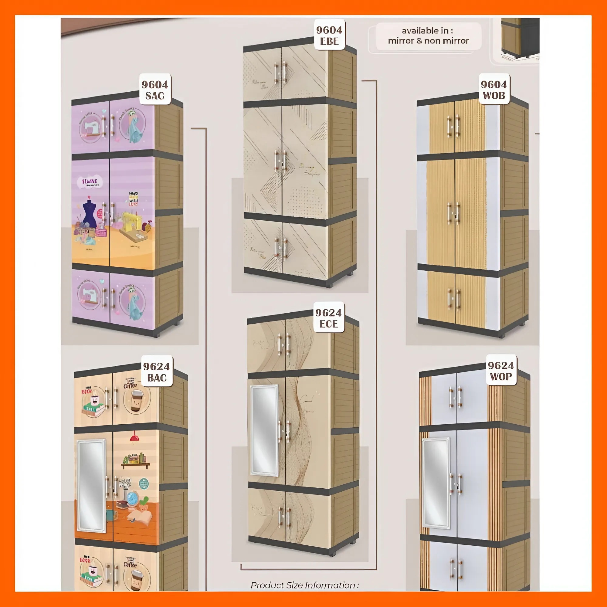 LEMARI PAKAIAN PLASTIK GANTUNG NAIBA MSC FIT EBONY CERMIN LEMARI SUSUN 4 MODERN JUMBO - FULL KUNCI BERKUALITAS 2025