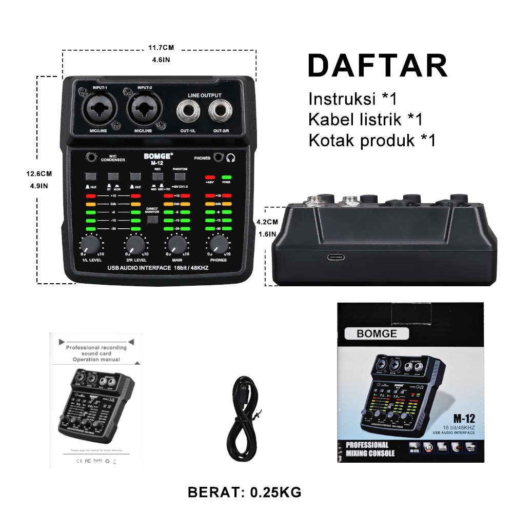 M-12 USB Audio Interface Professional Wireless DJ Audio Mixer Recording Music Computer Recording Audio Interface Xlr