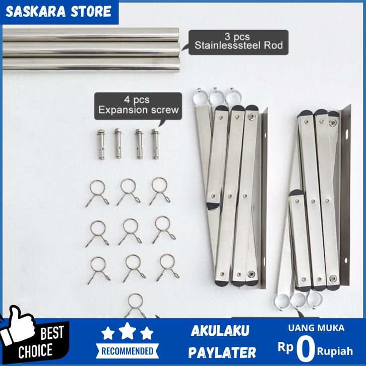Jemuran Baju Pakaian Dinding 160CM-200CM/Jemuran Dinding Stainless Steel/Jemuran Lipat Dinding 3 Batang 4 Batang