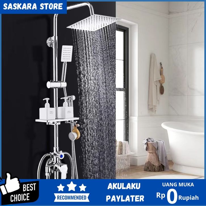 Paket Shower Head Shower Kamar Mandi Full Set Kran Cabang Shower 304 Persegi dengan Kran Cabang