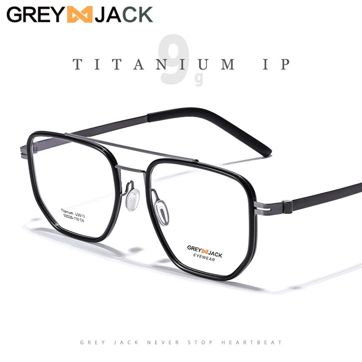 Grey Jack Kacamata Frame M0Del Kotak Aviator Fashion Pria Wanita Bahan Titanium Ringan Bisa Minus Antiradiasi Bluecromi