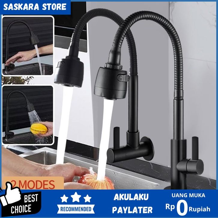 Keran Cuci Piring Angsa Fleksibel Wastafel / kran Air Angsa Kran Sink Dapur Drat 1/2 Inch 2 Mode