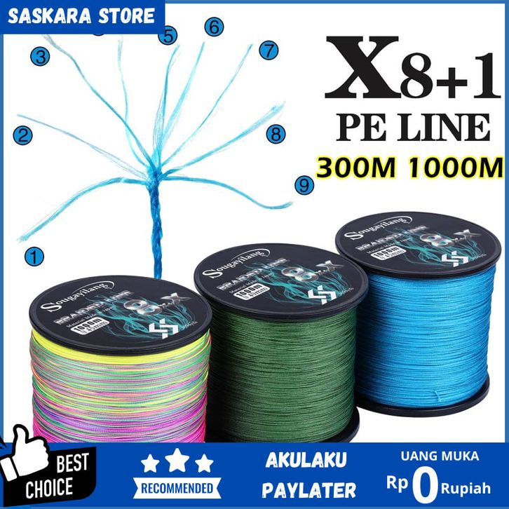 Sougayilang Senar PE X8+1 300M 1000M Senar Pancing X9 Kuat Dan Anti Keriting Braided Benang PE