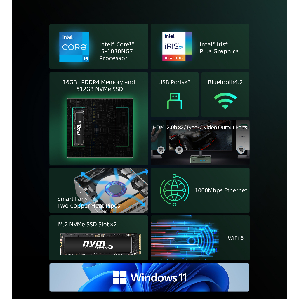 Mini PC BMAX B6 PRO Intel Core i5 1030NG7 16/512GB NVMe HDMI USB Type-C Windows 11 Pro