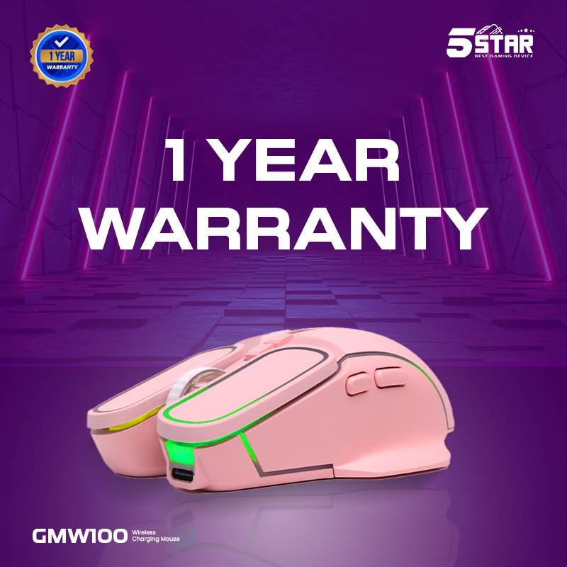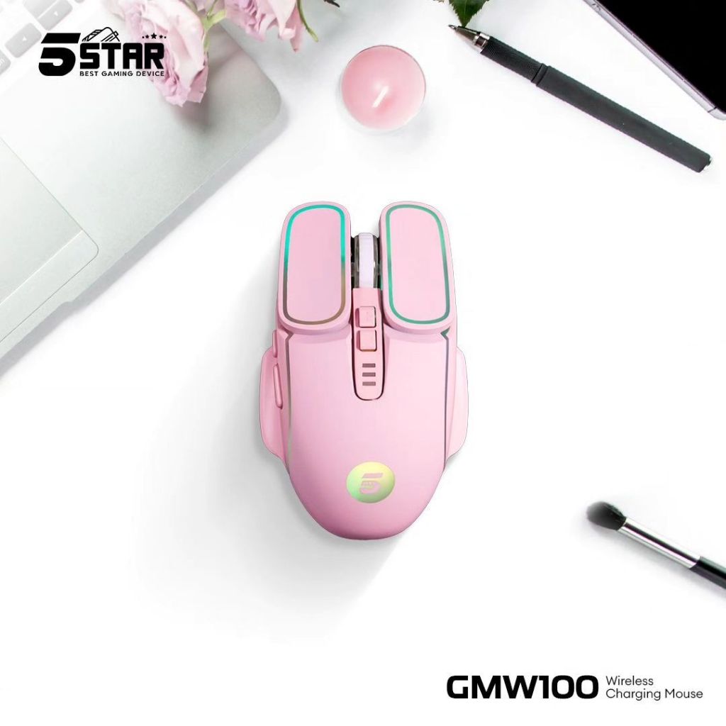 5Star Mouse pink Wireless Gaming Rechargeable Baterai Type-C Fast Charging 1600DPI RGB Light GMW100