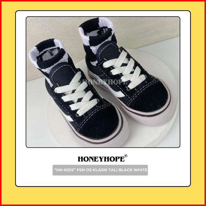 Honeyhope Sepatu Anak Laki-laki Dan Perempuan Fsn Os Og Klasik Tali Hitam Putih