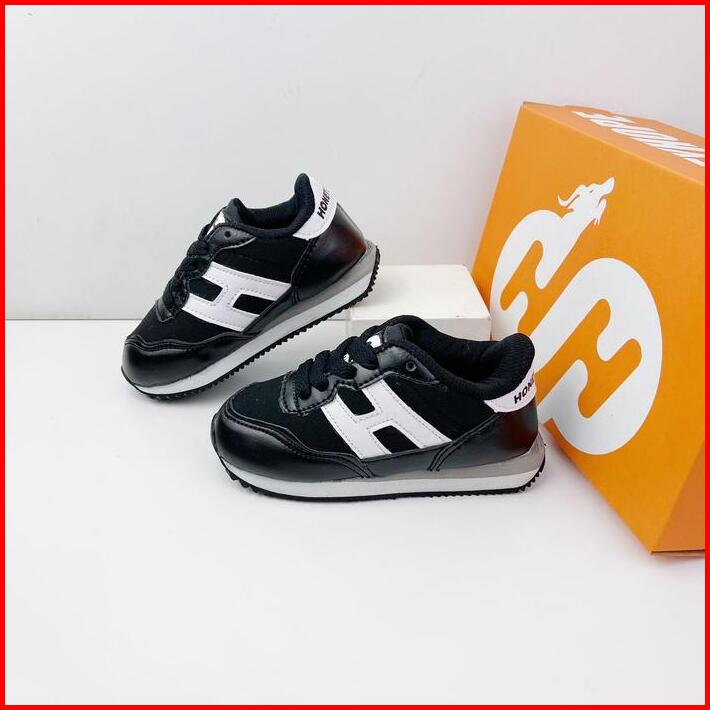 Honeyhope Sport Running Sepatu Anak Laki Laki Dan Perempuan Hitam Putih Tali Fashion Anak