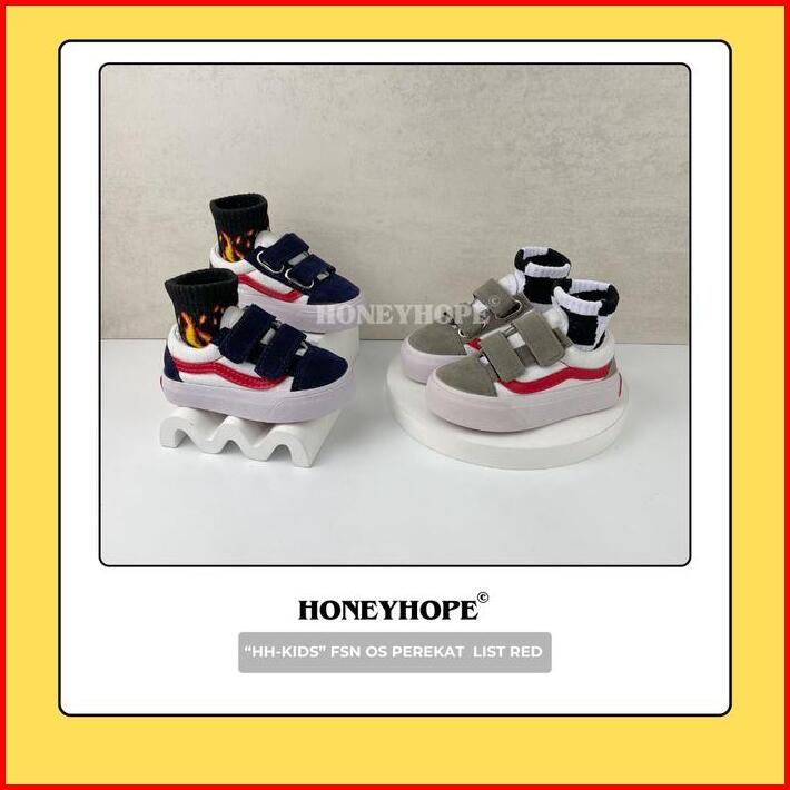Honeyhope Sepatu Anak Laki-laki Dan Perempuan Fsn Os Perekat Navy Red Grey Red Usia 10 Bulan