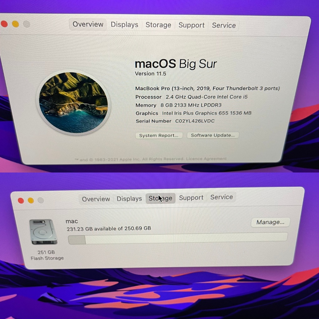 MacBook Pro 13 inch Touchbar 2019 Core i5 1.4GHz Ram 16 GB Ssd 256 GB Fullset Second