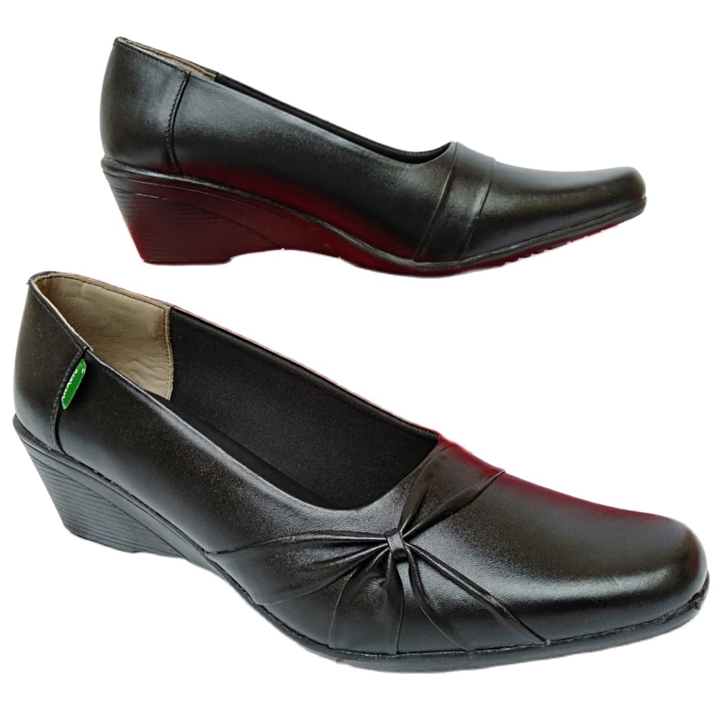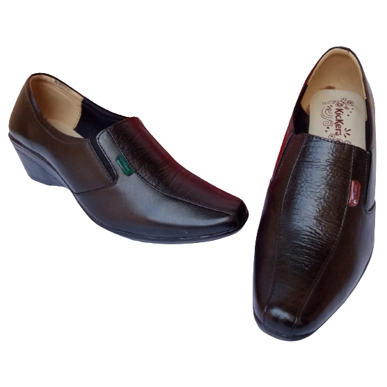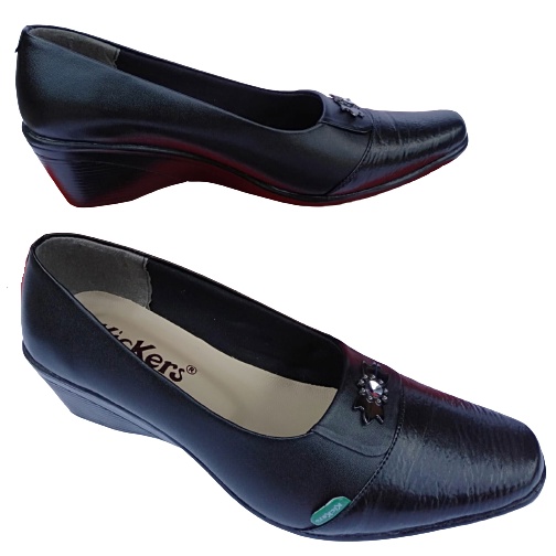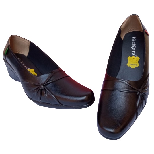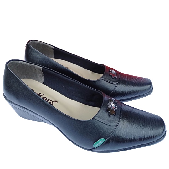 Sepatu Pantofel Wanita KICKERS Kulit Asli Original Kerja Sekolah Formal Warna Hitam Fantofel Slip On Tanpa Tali Perempua