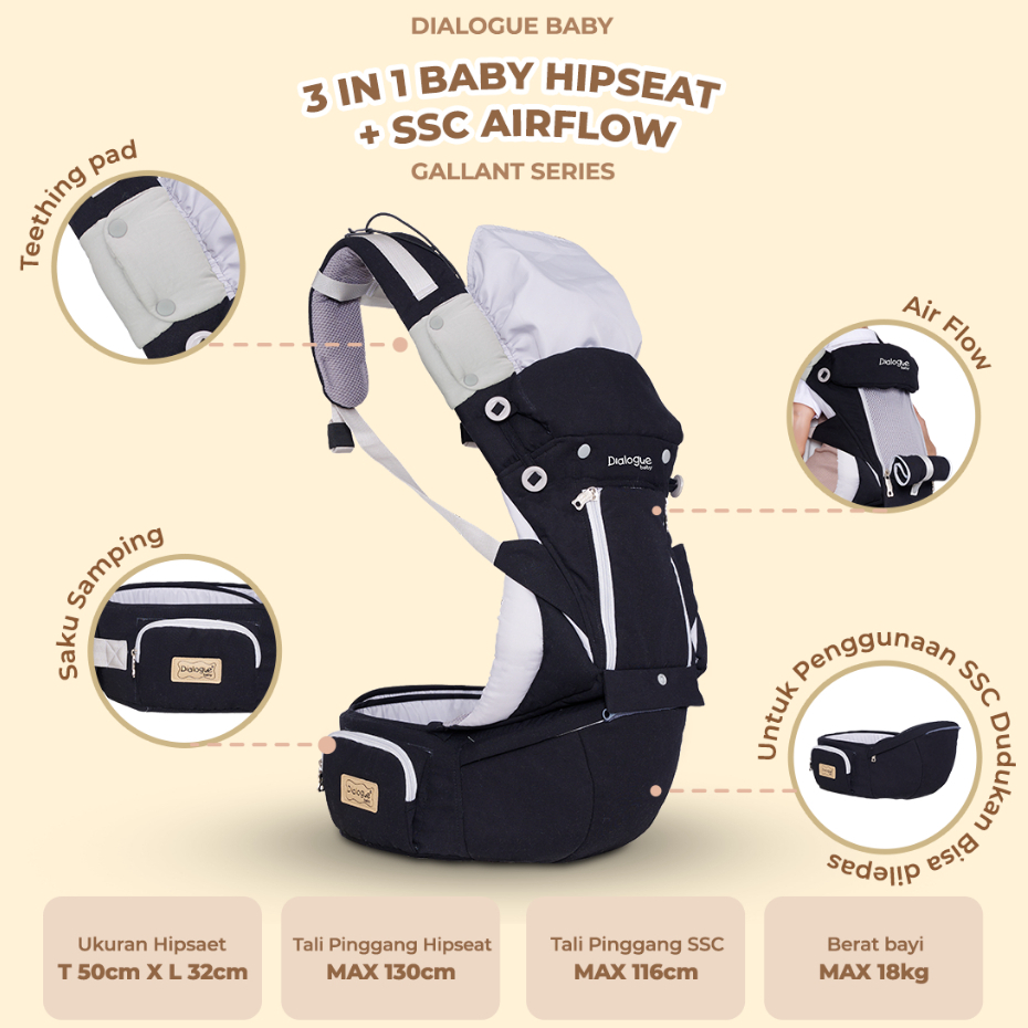 Dialogue Baby 3 In 1 Gendongan Hipseat + SSC / M - Shape Airflow Gallant Series 10 Posisi - DGG1040