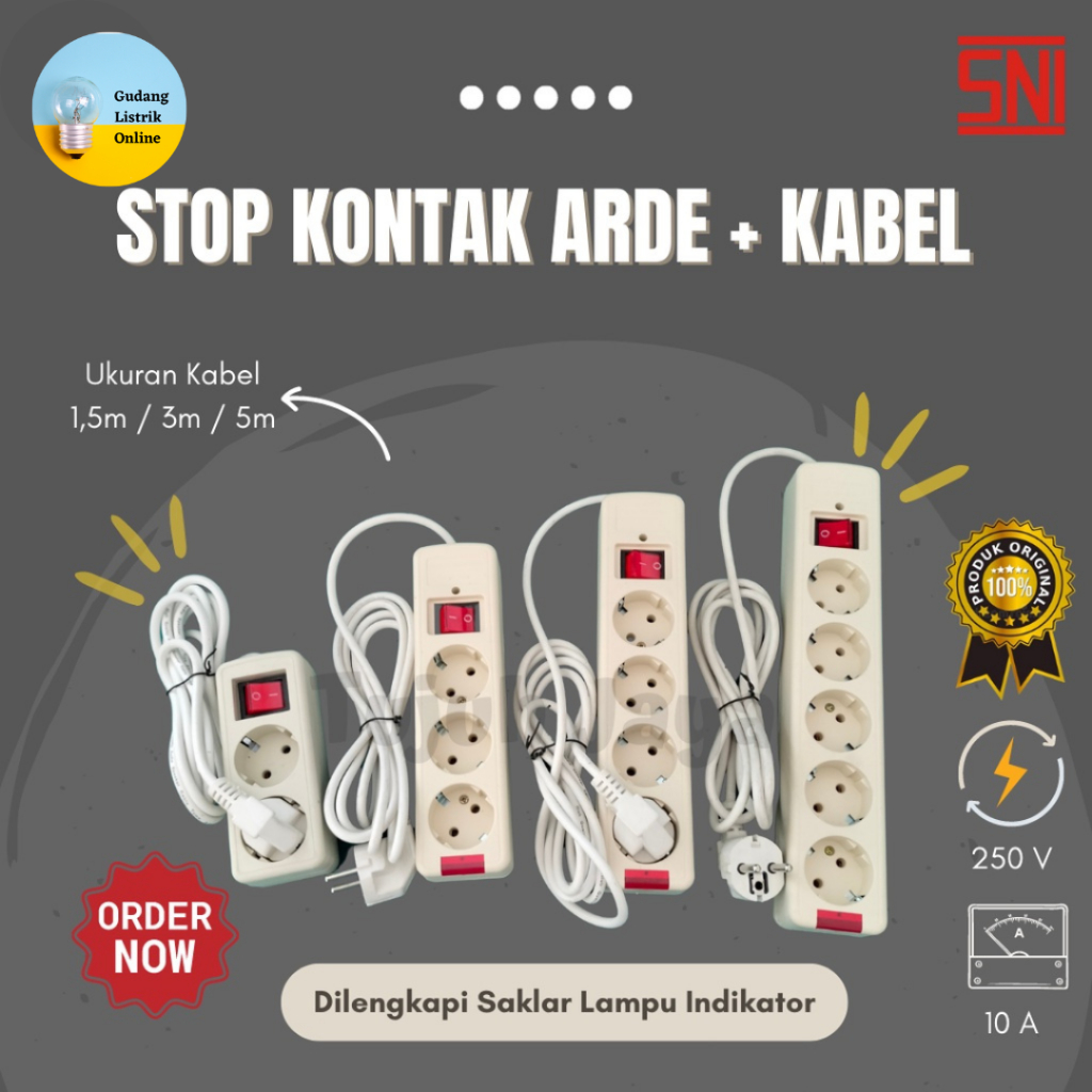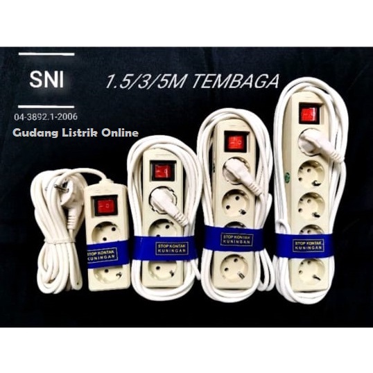 STOP KONTAK + KABEL 2/3/4/5 LUBANG 1.5/3/5 METER SNI