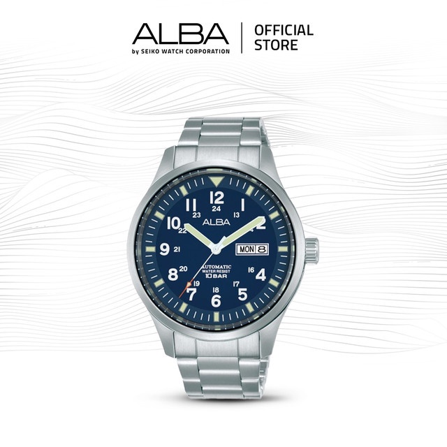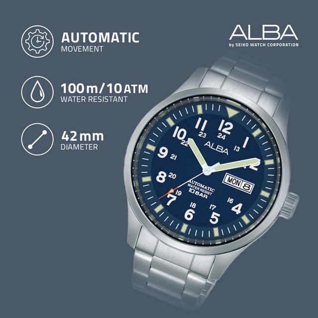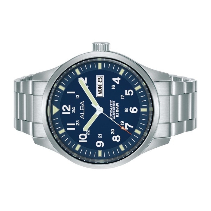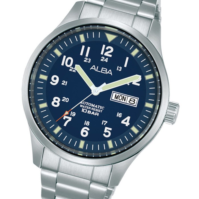Alba Mechanical Jam Tangan Pria Military Field AL4211 / AL4211X1 Automatic Blue Dial Stainless Steel Strap Watch