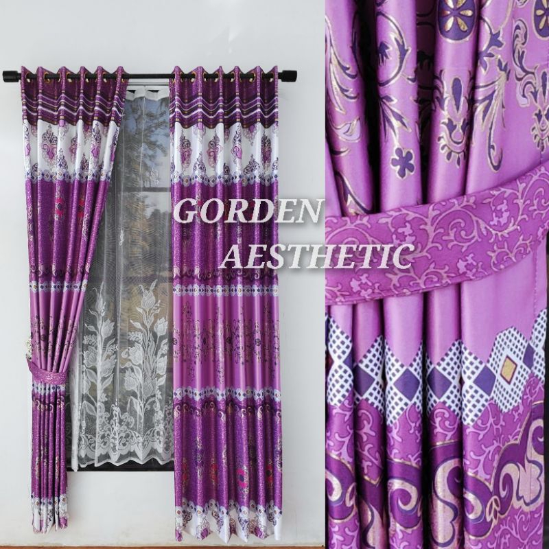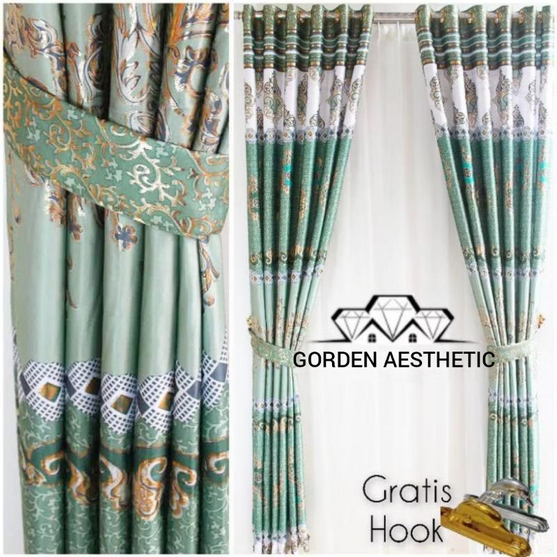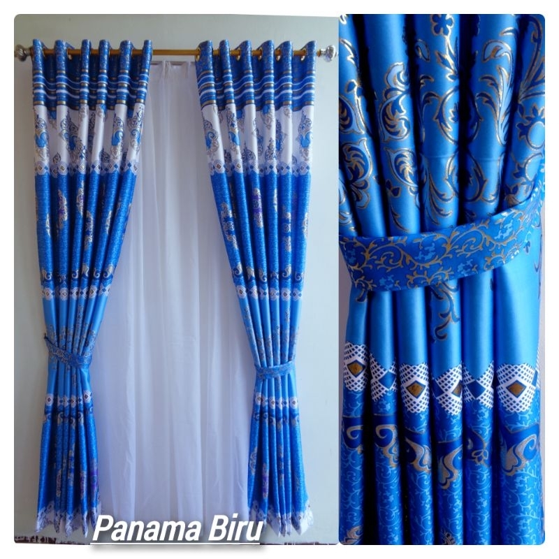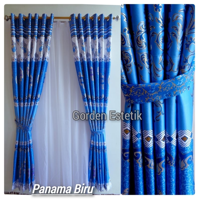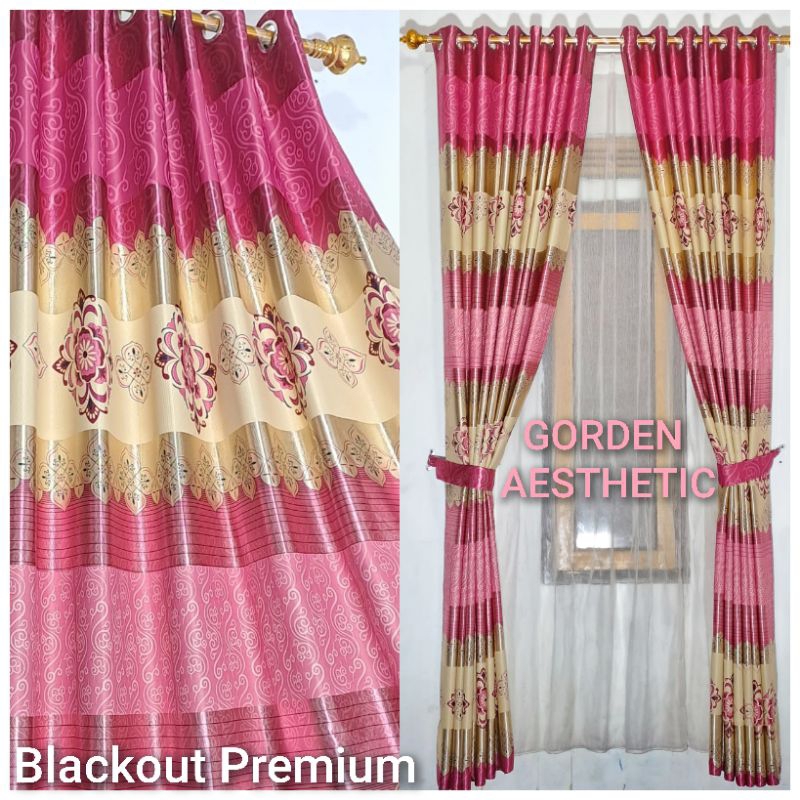 Gorden Blackout Motip Panama Warna Biru Hijau Pink Ungu Terbaru Model Smokring 6 Gelombang