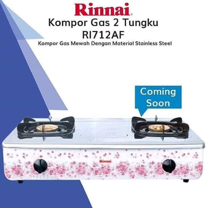 PROMO KOMPOR GAS RINNAI RI-712 AF Kompor Gas 2 Tungku Jumbo Stenlies Steel - Motif Bunga
