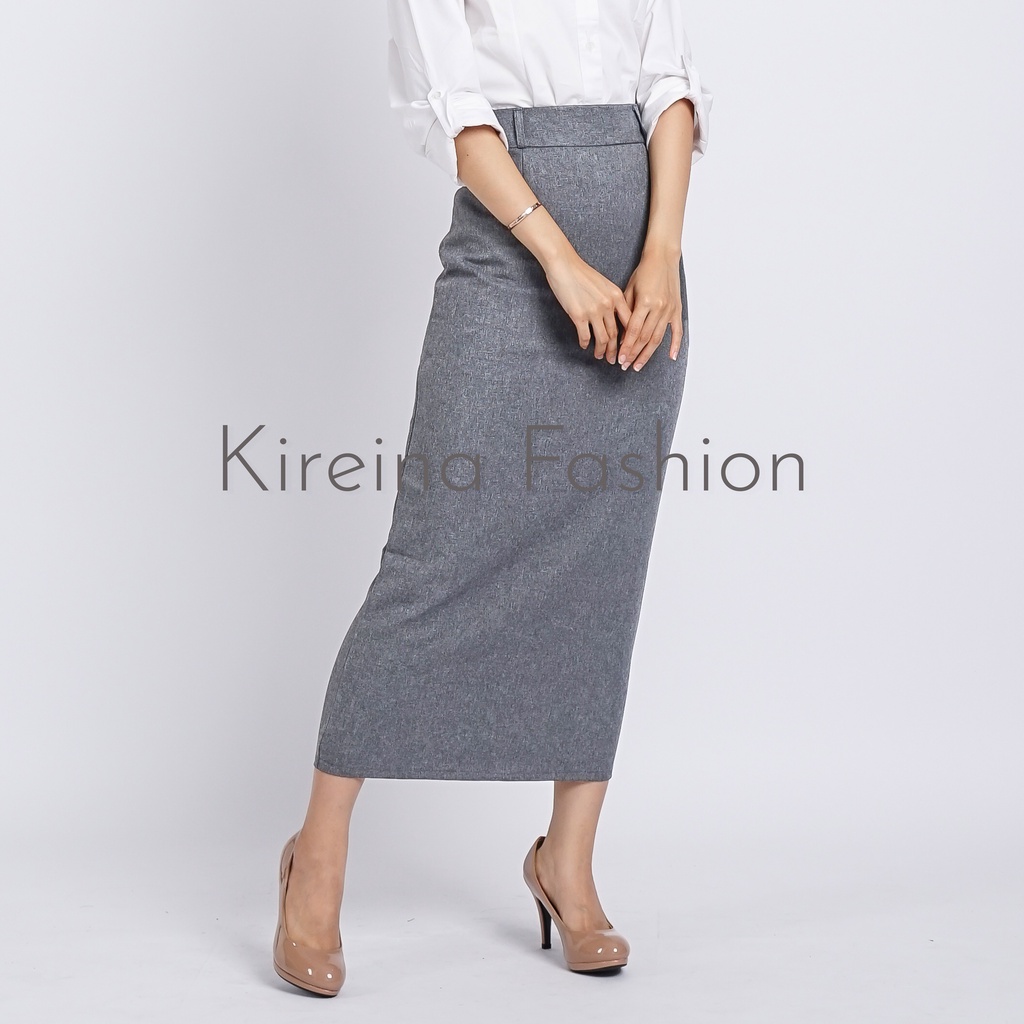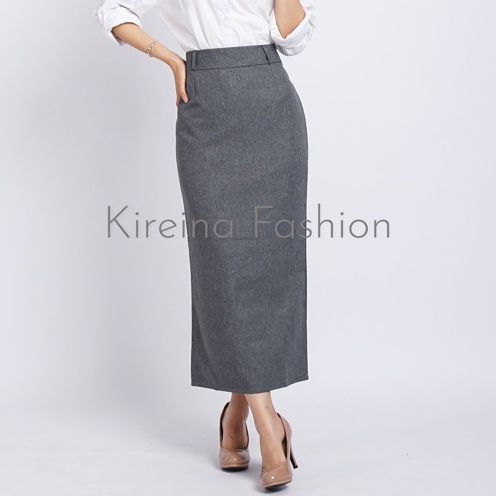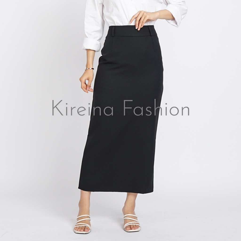 (FLASH SALE)KIREINA - Rok Span Kerja Wanita Rempel Panjang Bahan Formal Kantor