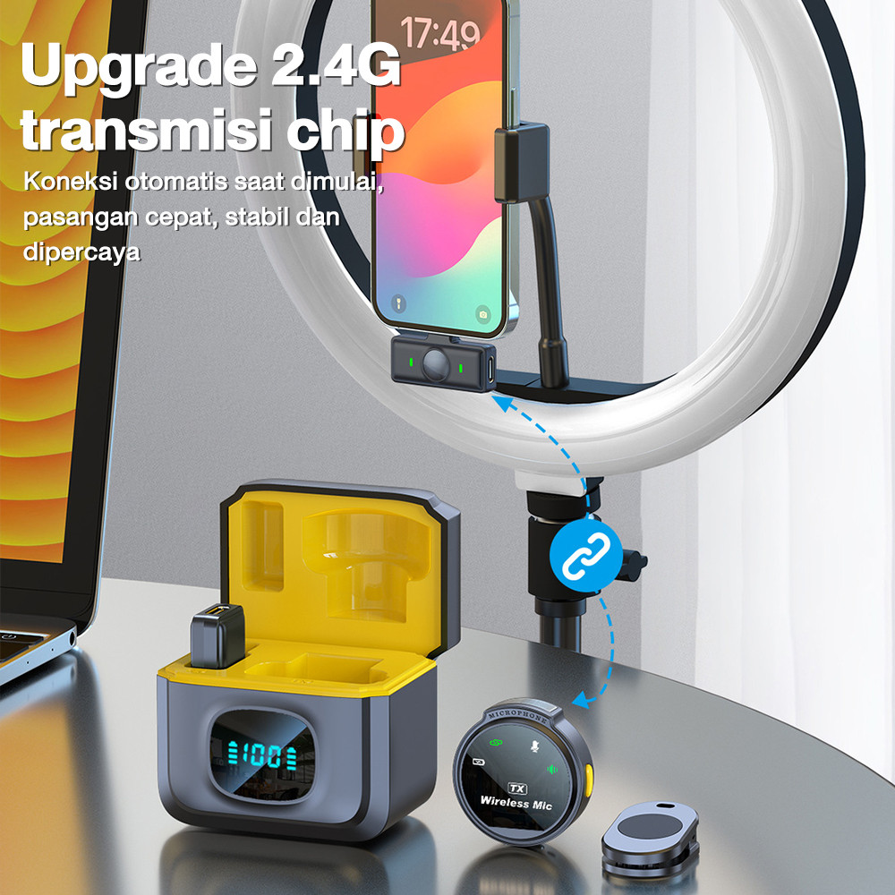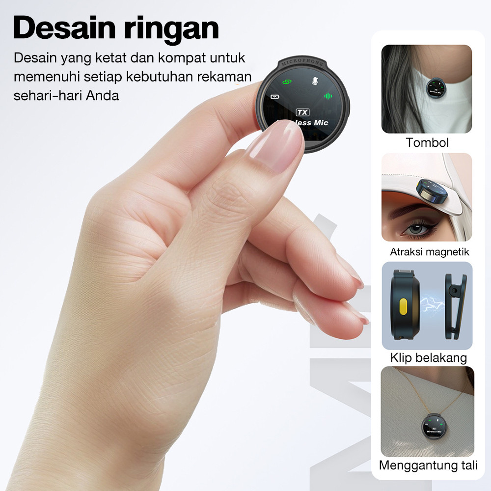 Wireless Microphone Magnetic Clip On Mic Lavalier Microphone HP Plug & Play Nirkabel Mikrofon with Charging Case