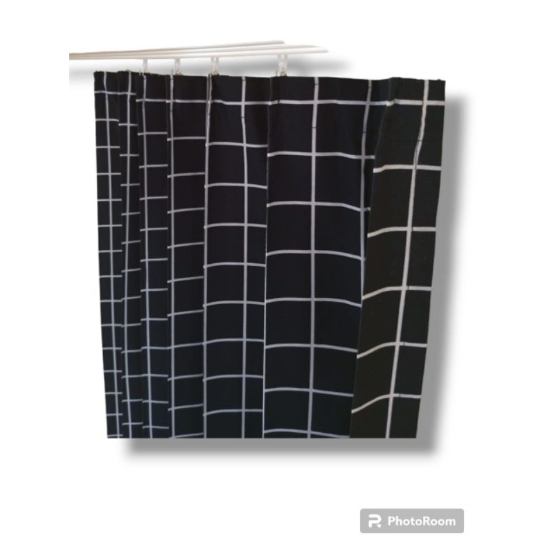gorden kotak kotak hitam. model plisket/ tirai jendela kamar aesthetic.