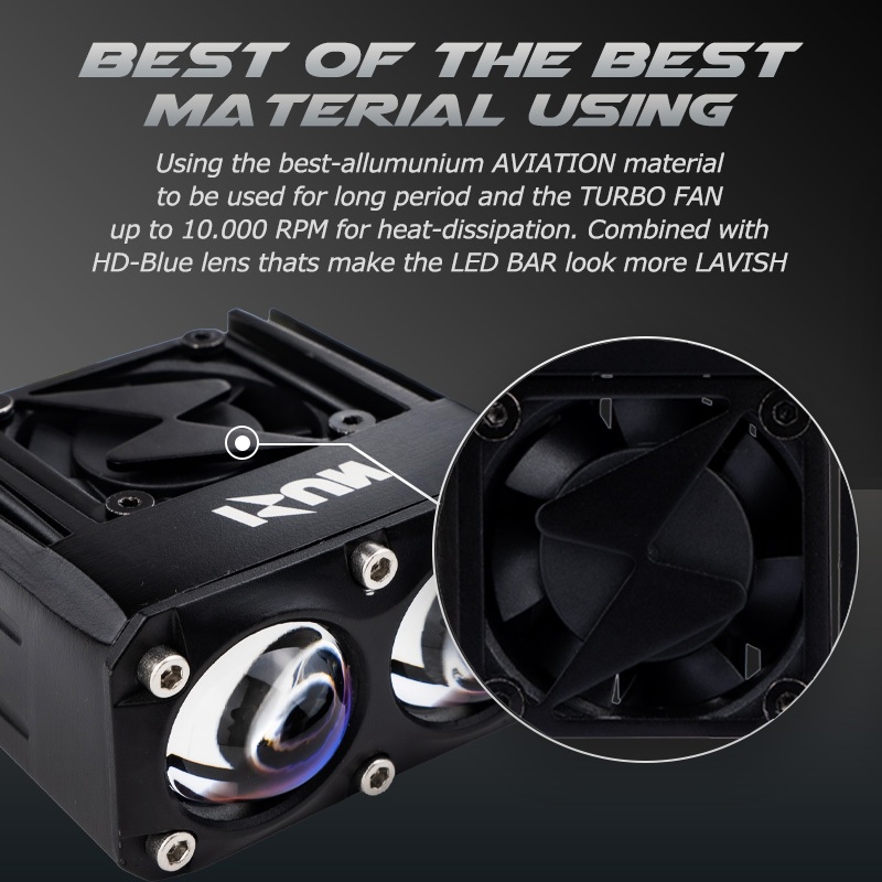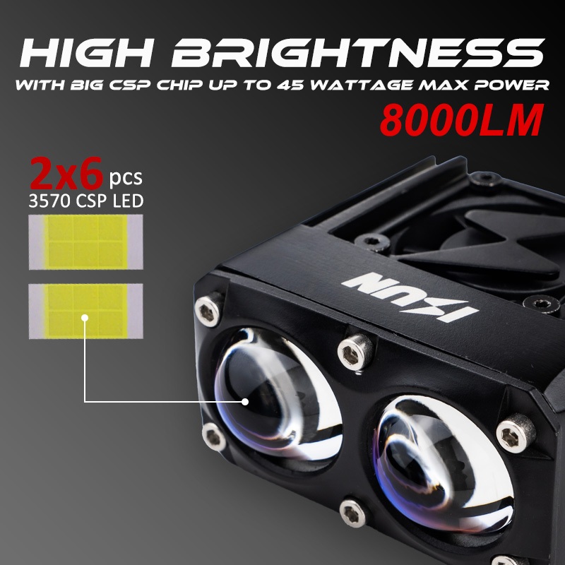 LAMPU TEMBAK LASER GUN SQL 2 MATA ISUN MPU2 MPU II 90W DENGAN KIPAS PENDINGIN DAN BLUE LENS DC9-80V LED