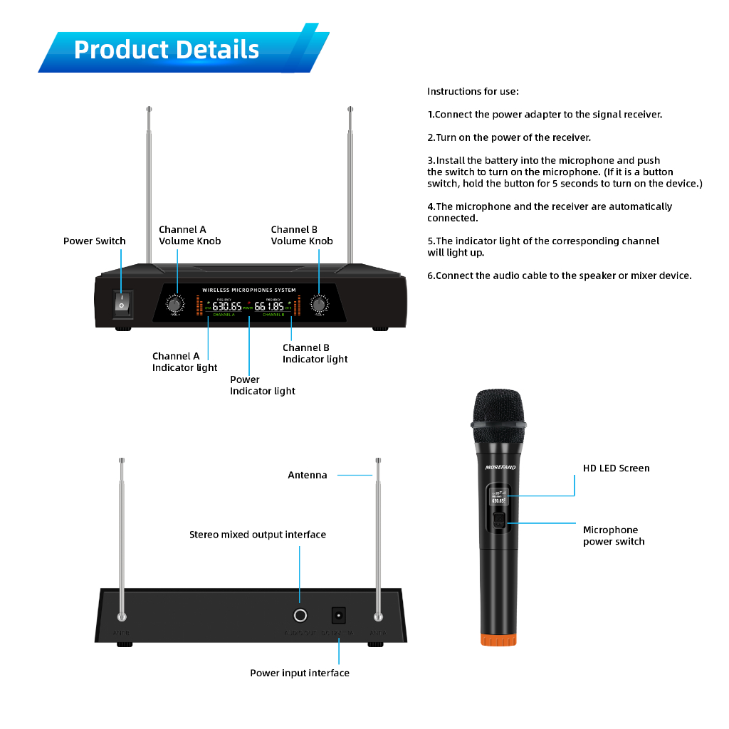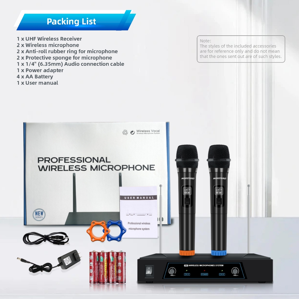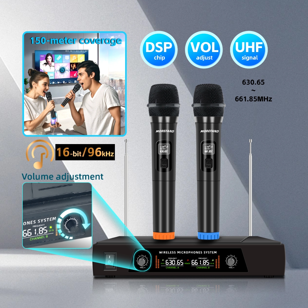 MOREFAND Mikrofon Nirkabel, Transmisi Nirkabel, Anti-gangguan, Kualitas Suara Unggul, Plug-and-play, Pilihan Saluran Mul