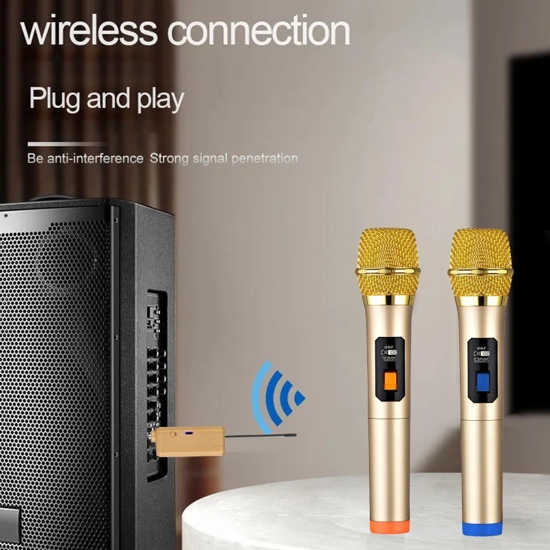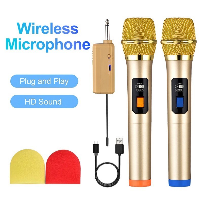 [Tersedia] 2 PCS Mikrofon Nirkabel yang Ditingkatkan Mikrofon Profesional Mikrofon Nirkabel Emas Asli MIC-206 Mikrofon N
