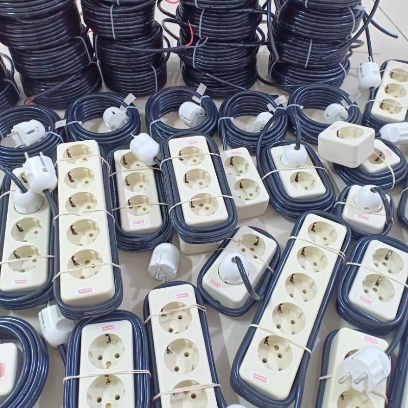 Stop kontak Uticon 1,2,3,4,5,6 Lubang + Kabel 1,2,3,4,5,6,7,8,9,10 Meter Warna Hitam