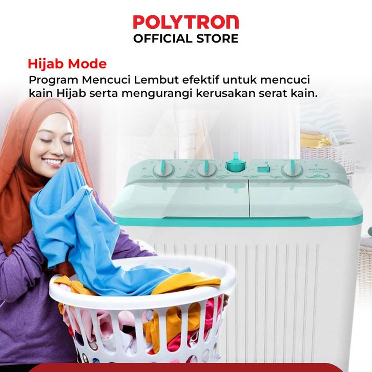 POLYTRON Mesin Cuci 2 Tabung Giant Series Hijab 8 KG - PWM 8076Y