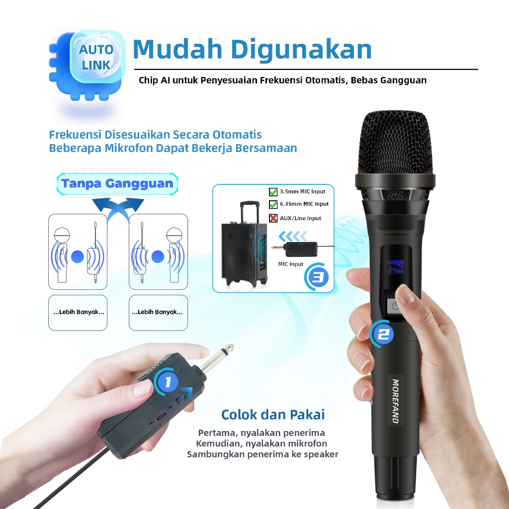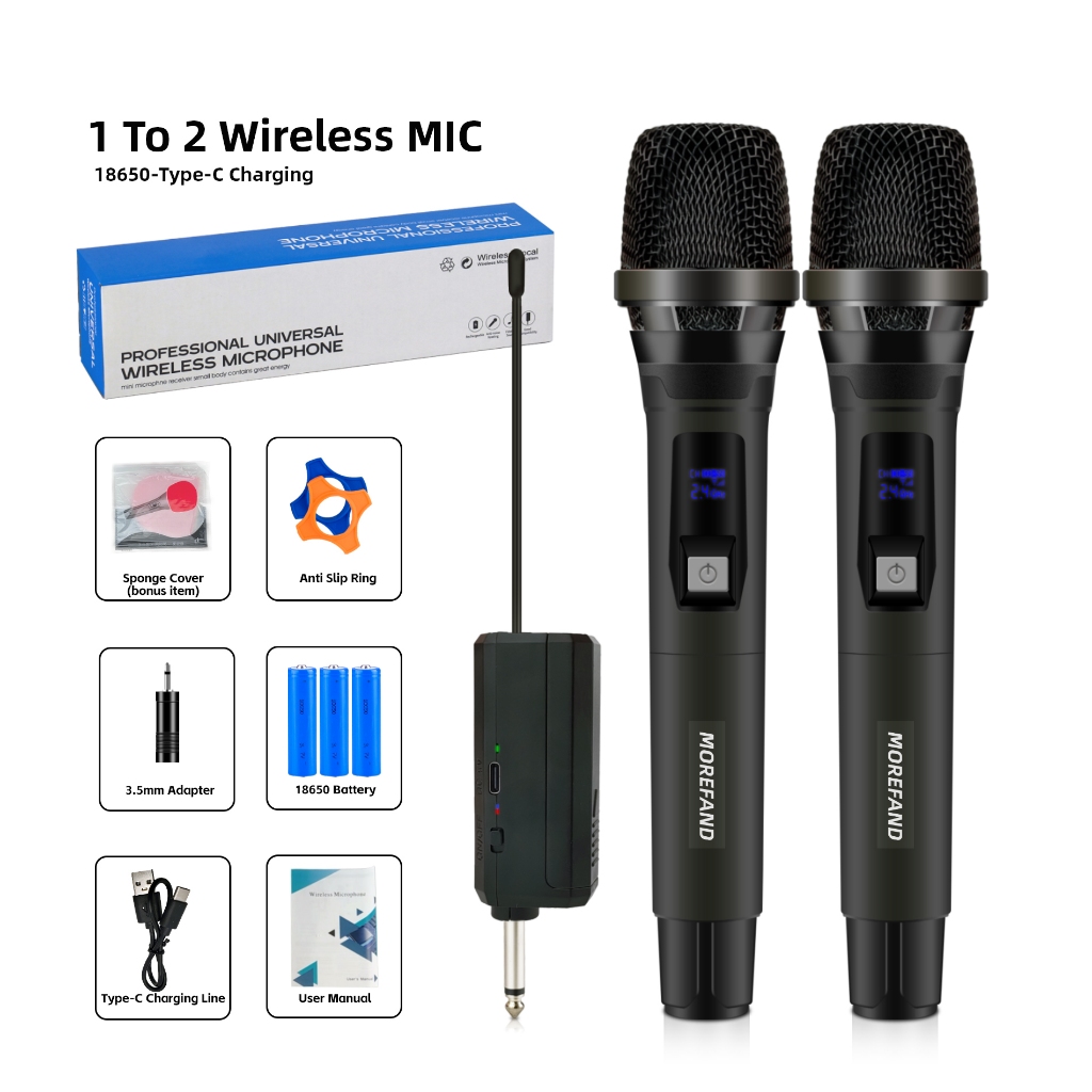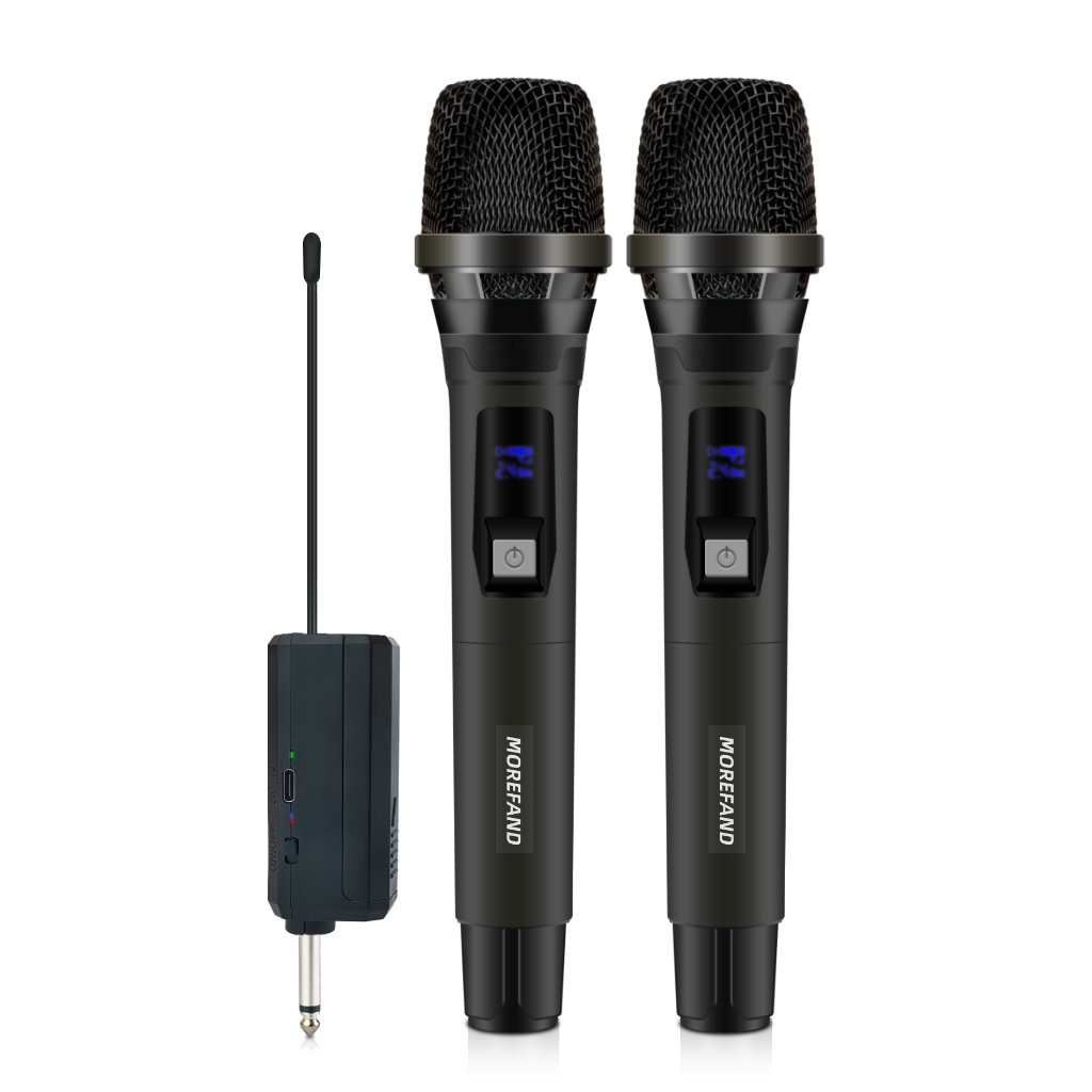 Morefand Mikrofon Nirkabel, Kualitas Suara Tinggi, Desain Tahan Gangguan, Daya Tahan Baterai Lama, Cocok untuk Pertunjuk