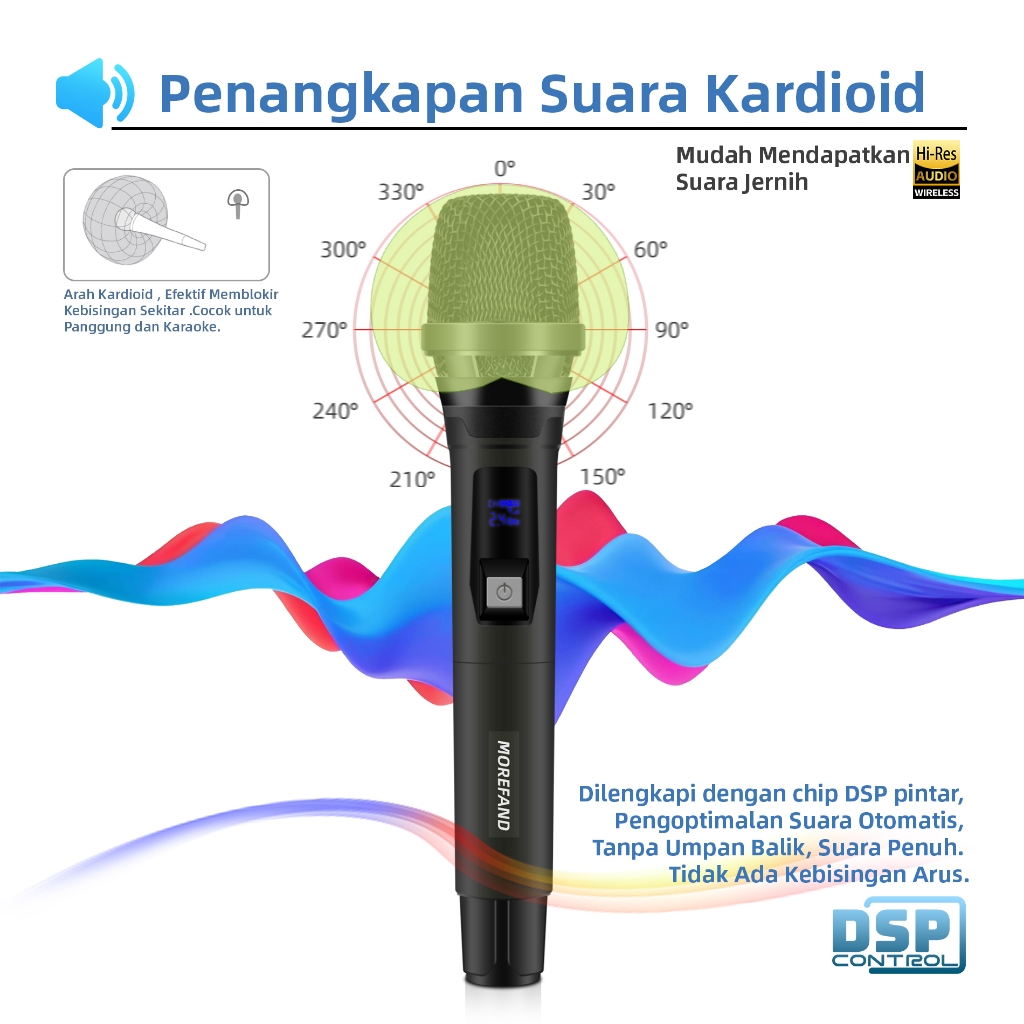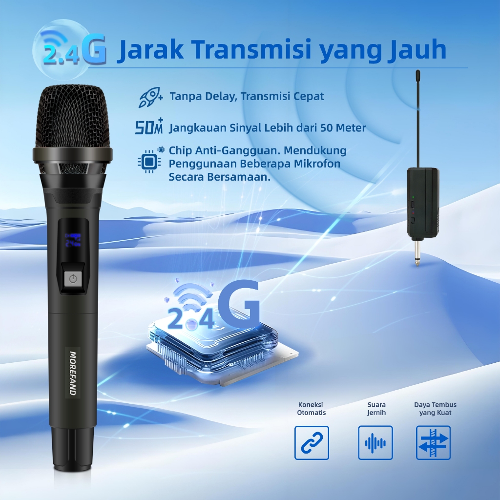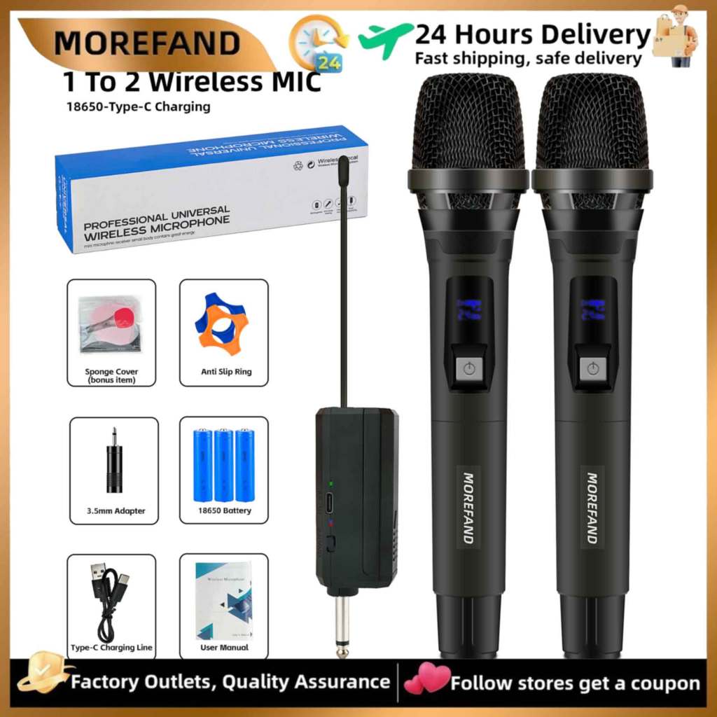 Morefand Mikrofon Nirkabel, Kualitas Suara Tinggi, Desain Tahan Gangguan, Daya Tahan Baterai Lama, Cocok untuk Pertunjuk