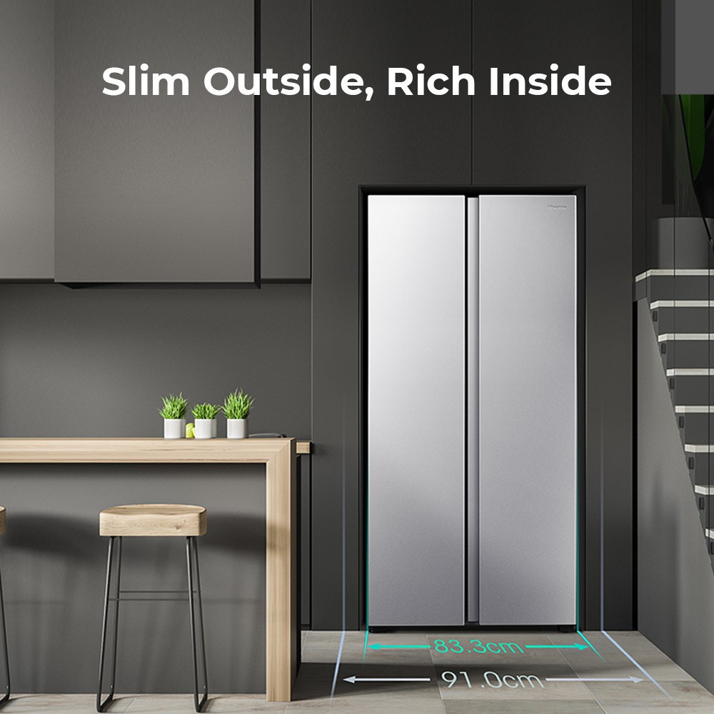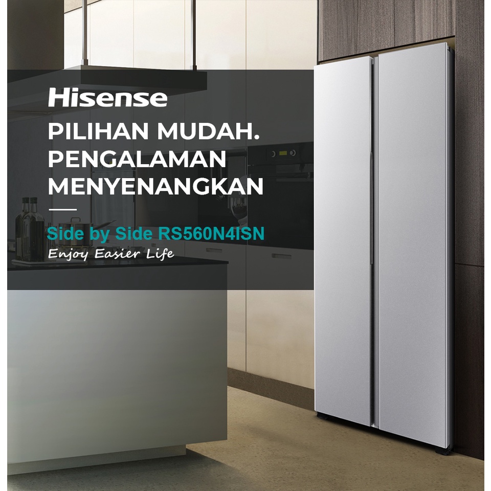 [Mall] Hisense Kulkas 2 Pintu (Refrigerator) Lemari Es Side by Side Kapasitas 468L RS588N4IGN - Silver/ Perak No Frost &