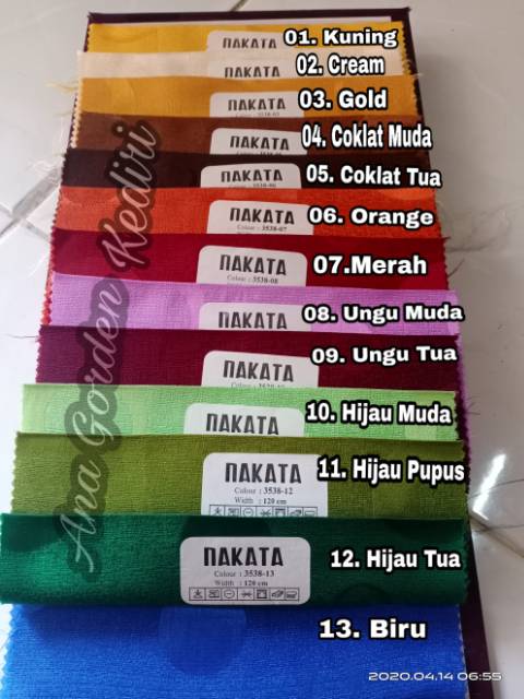 01. kuning, 02. Cream, 03. Gold, 04. Coklat Muda, 05. Coklat Tua, 06. Orange, 07. Merah, Tulis Ungu muda/Tua, 10.Hijau muda, 11.Hijau Pupus, 12. Hijau Tua, 13.Biru, 14. Abu