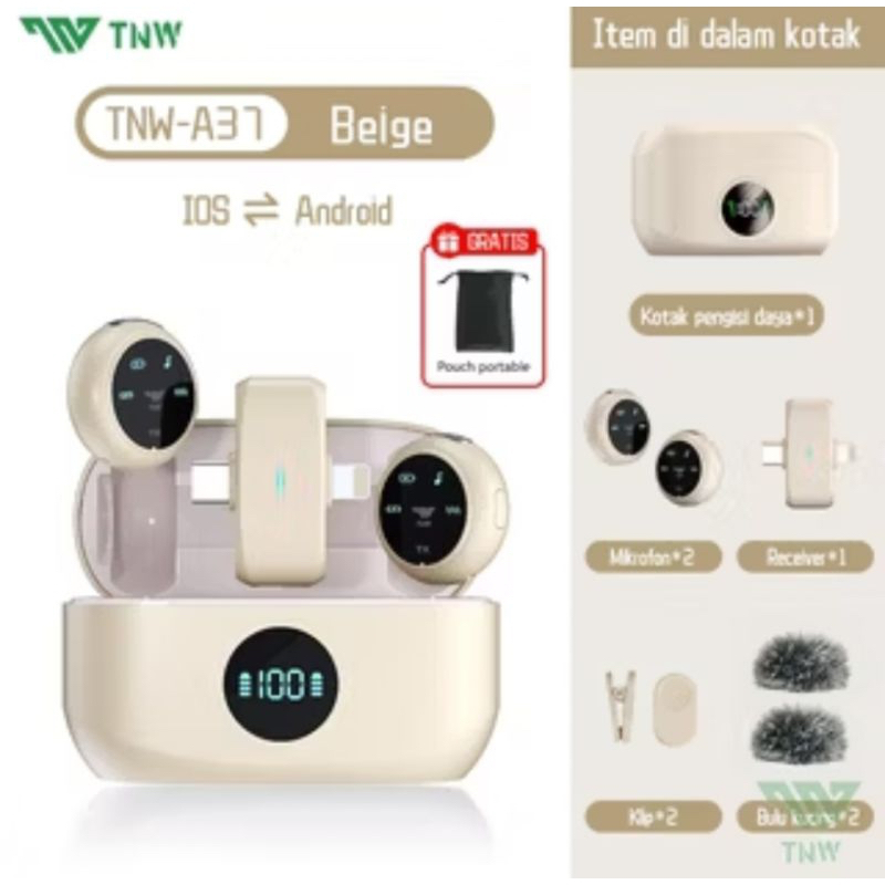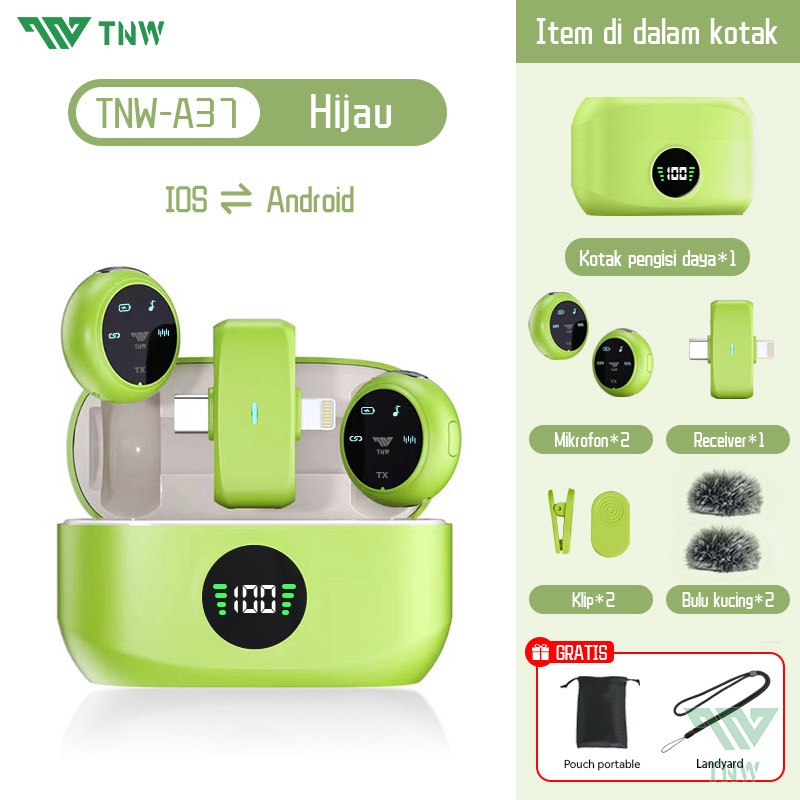 TNW A37 Wireless Microphone 2-In-1 Clip On Mic Magnetic Mikrofon HP Plug & Play Dual Lavalier Microphone with Charging C