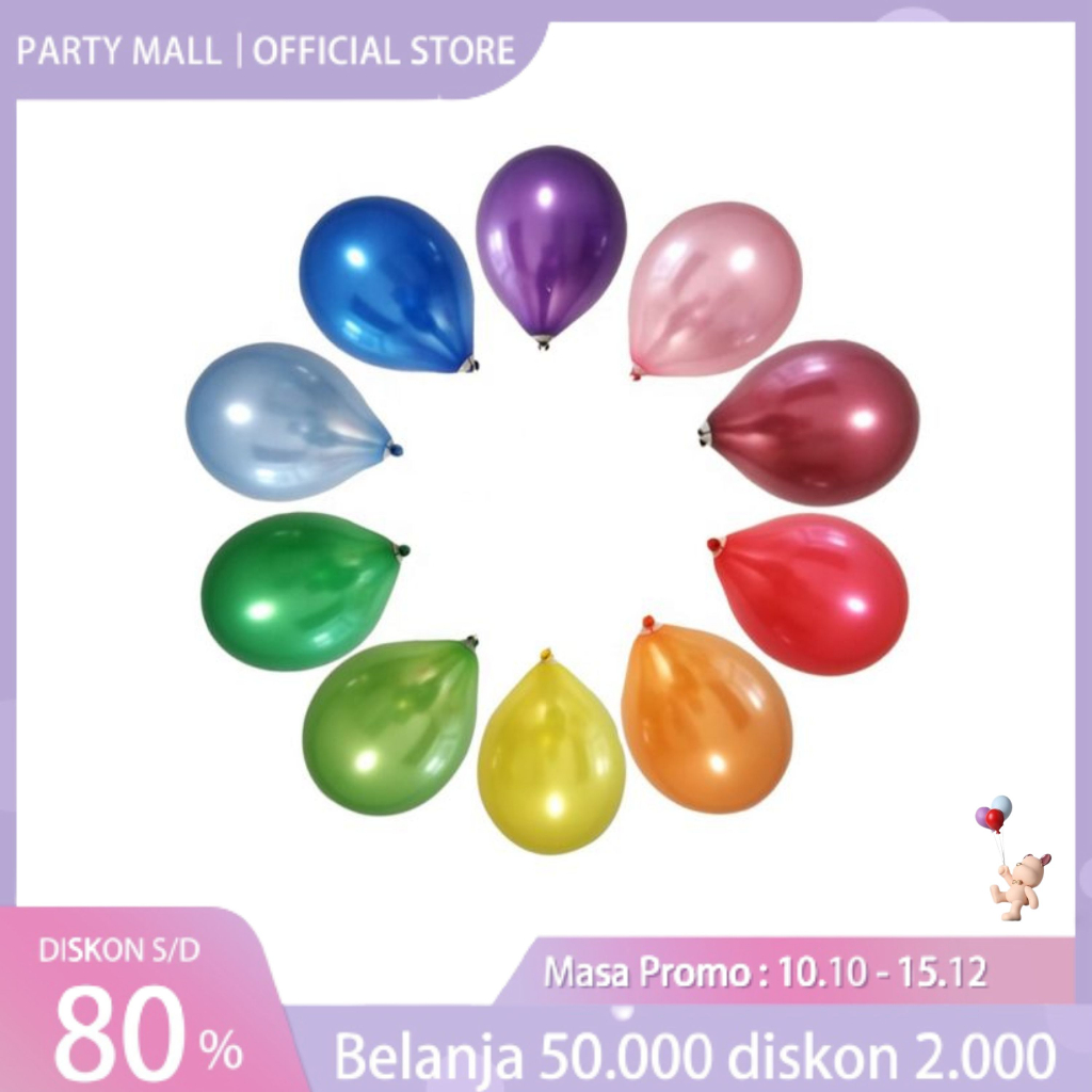 Balon Latex Metalik 12 inch / Balon Pesta / Balon polos Warna Warni ( 1pcs )