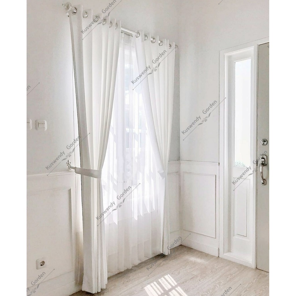 Gorden Blackout Putih 100 x 250 cm Tinggi 3 meter Polos Hordeng Jendela Pintu Tirai Minimalis
