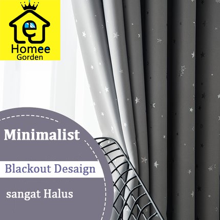 Gorden abu abu+ custom+Tirai Jendela star+Gordyn Blackout murah ( star )