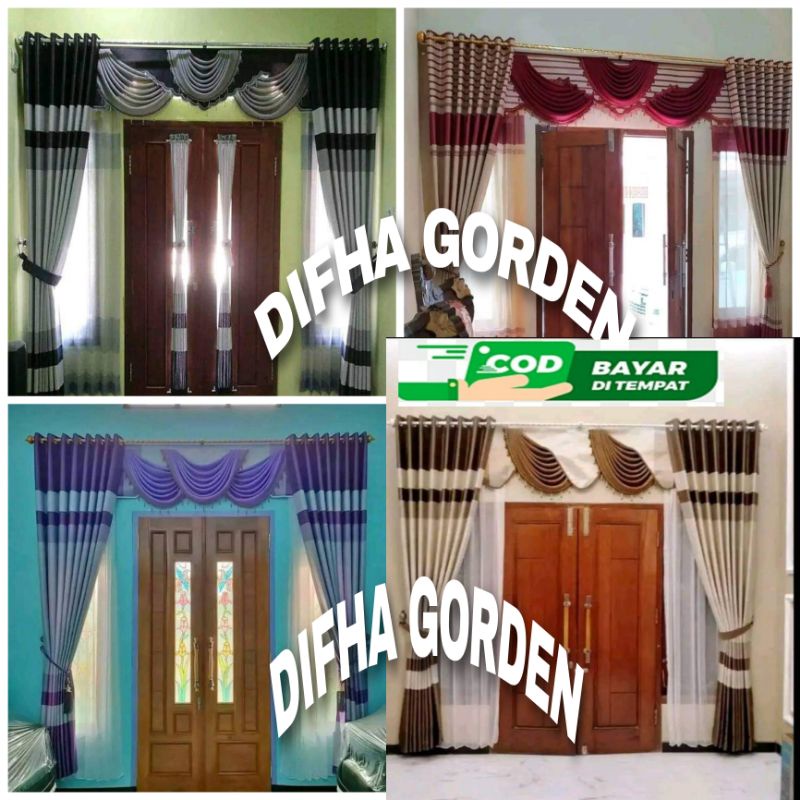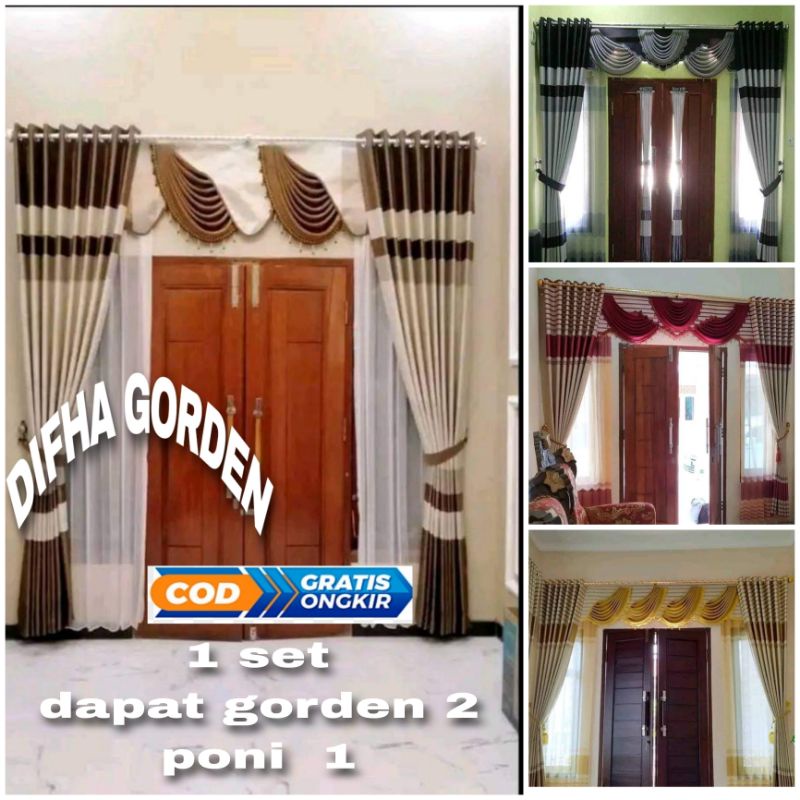 gorden Poni Dalam Gelombang Spanyol satu set Jendela Pintu Ruang Tamu Kupu tarung 3meter 250cm Mewah