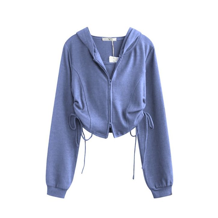 Jaket Wanita Korean Style Adella Crop Zipper Serut - jaket casual atasan wanitan kekinian